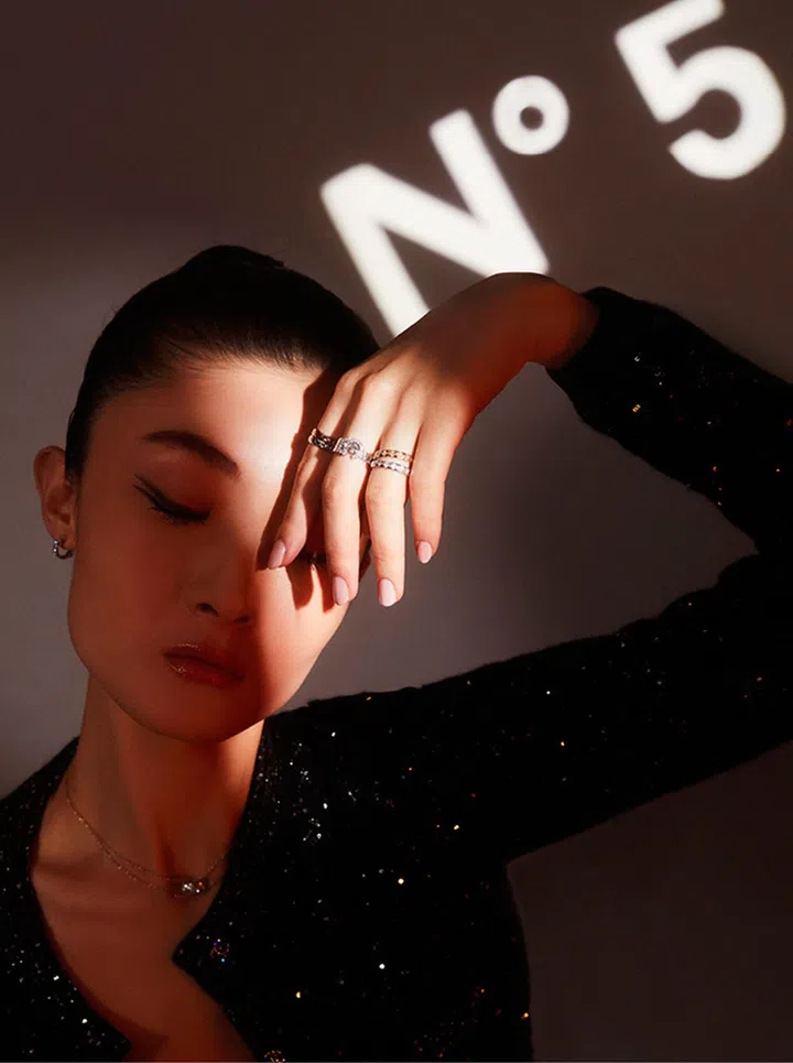 早前品牌也推出全新N°5 fine jewellery系列:(暂时)共四款以幸运数字“5”为焦点的Eternal N°5镶钻白金首饰,精致之余又不失时尚美感。