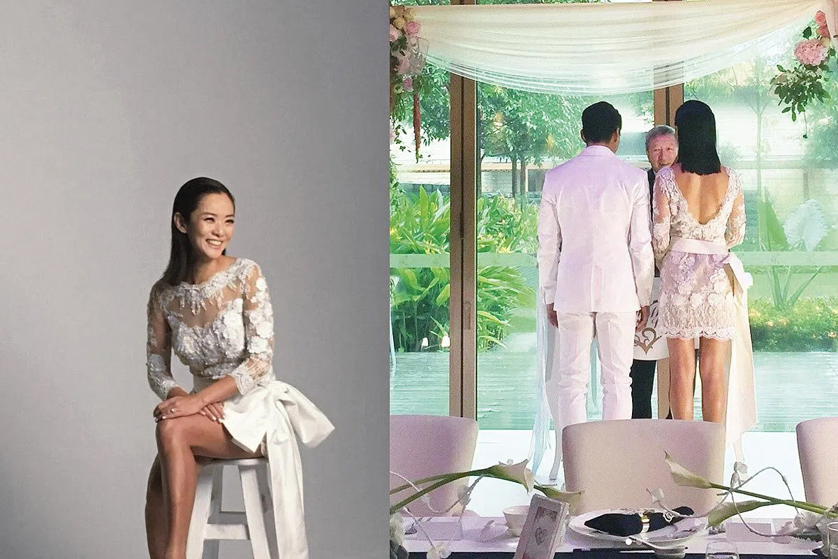 25 Jul 2017翁清海结婚! 新娘俏丽蕾丝白纱出自谁家?还记得本地前演员翁清海吗?近年已淡出演艺圈的他,日前与圈外女友于圣淘沙的Equarius Hotel低调完婚。当天新人以一袭白色造型现身,犹如白马王子与白雪公主童话里的happy ending。一起来看看新娘的漂亮婚纱,出自谁家?NUYOU TeamCELEBSfashionspottedweddingwhoworewhat为了这场婚礼,翁清海特地请本地著名时装设计师Alfie Leong为妻子设计这件独一无二的蕾丝白纱。 梦寐以求的“嫁衣”据Alfie透露,这件白纱是与新娘密切商讨共同设计出她梦寐以求的“嫁衣”。蕾丝白纱的透视衣袖设计,隐约看到肌肤为新娘增添一丝小性感。为了让短版的白纱达到婚礼的“drama”,还在腰间加上了一个大蝴蝶结,既俏丽亦不失庄重。 想要回顾刘子绚、黄馨慧、陈妍希的婚礼?请点击:刘子绚与田铭耀的梦幻婚礼、幸福洋溢!黄馨慧多变的婚礼妆发以及去年陈妍希、陈晓浪漫“双陈记”婚礼。分享文章: