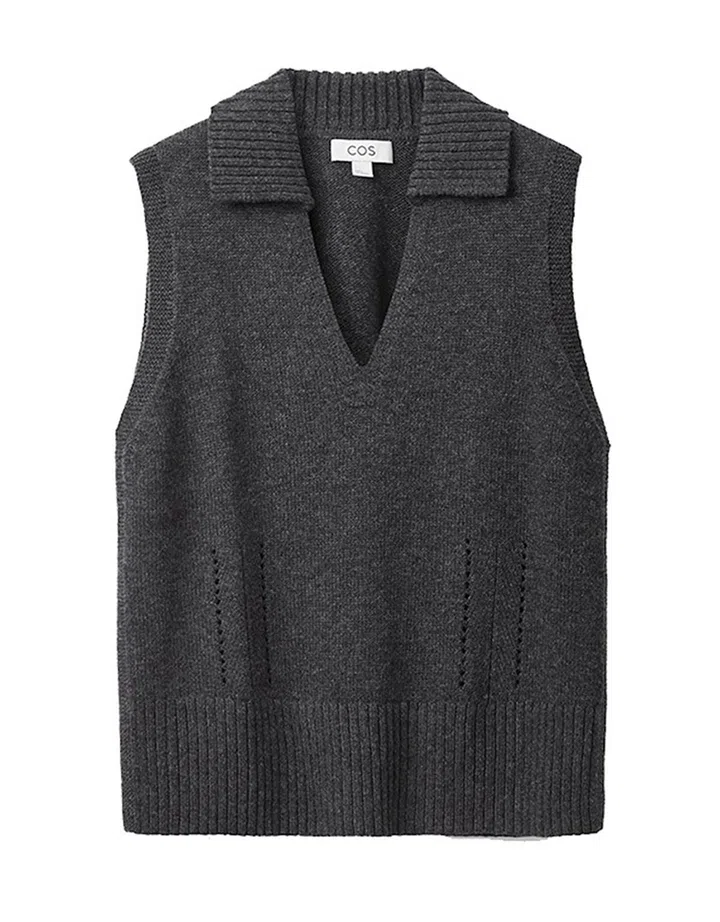 舒适柔软的100%羊毛针织背心,廓形放松,不仅令穿着更加透气,也更便于你进行叠搭。