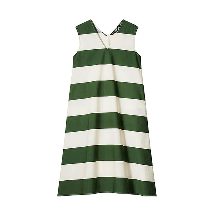 这款连衣裙的印花由Vuokko Eskolin-Nurmesniemi设计,名为Galleria(画廊)。这款强大印花诞生于1956年,堪称品牌印花史上的经典设计之一。
