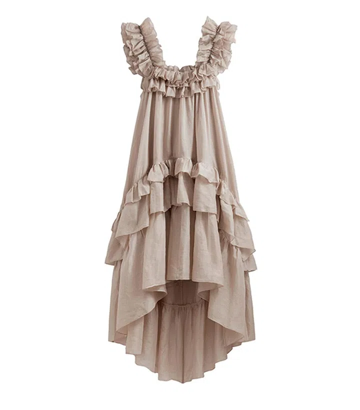 浪漫柔美的荷叶边裙装,以不对称剪裁及宽松的轮廓打造出独特又松弛的设计。不妨搭配一款精致的细手镯,为休闲度假造型增添一丝华贵。