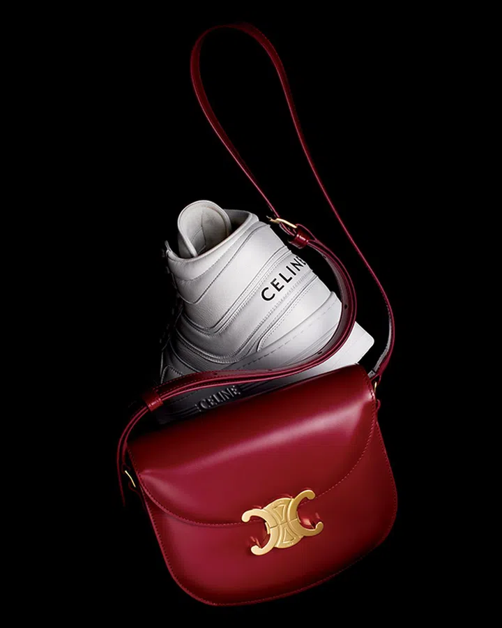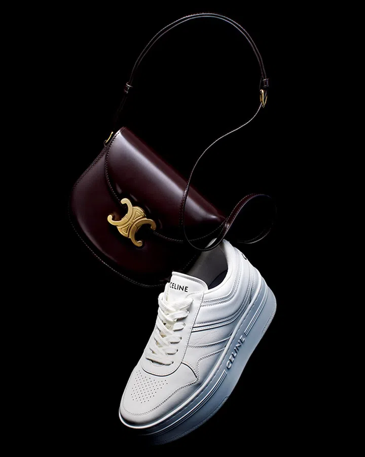 法国品牌CELINE以亮滑皮革缝制的新款Triomphe——Teen Besace Triomphe肩袋,圆润线条略带复古气质却异常modern,尺寸更细腻考量到生活需求;呼应1990年代风情的Block皮革球鞋,外形简约、醒目而轻盈,只需加搭一双白袜就立马复刻T台造型。
