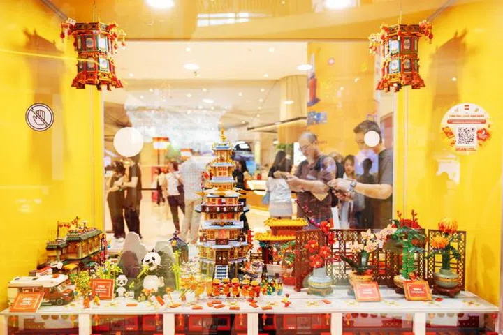 Lego新春场景模型里有几个红包封呢?数一数吧!猜对有奖。(图:新达城提供)