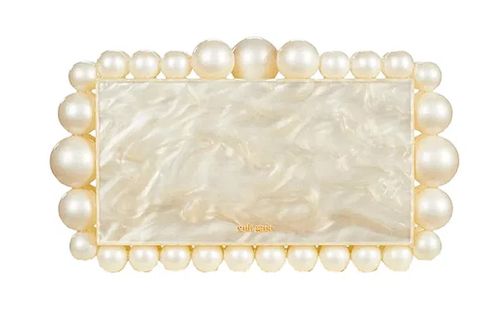 除了皮革手拿包,Cult Gaia标志性的设计便是这款由亚克力打造而成的Eos手拿包。继爆款Eos Box肩袋,品牌以此廓形推出手拿包,唯美的珍珠元素包裹着包身,将优雅的质感、贵气与创意,全聚集与一身。