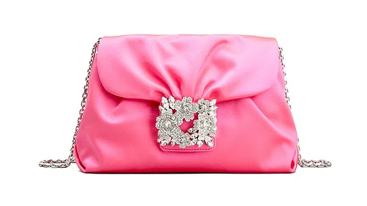 Roger Vivier将品牌标志性的方形鞋扣诠释在新推出的Bouquet缎面手拿包上,更巧妙地以水晶花卉缀饰遍布鞋扣上,增加奢华感。手拿包附带的链条方便以不同形式携带,或手拿或肩挎,随你喜好。韩星裴秀智也在拎这款包哦!
