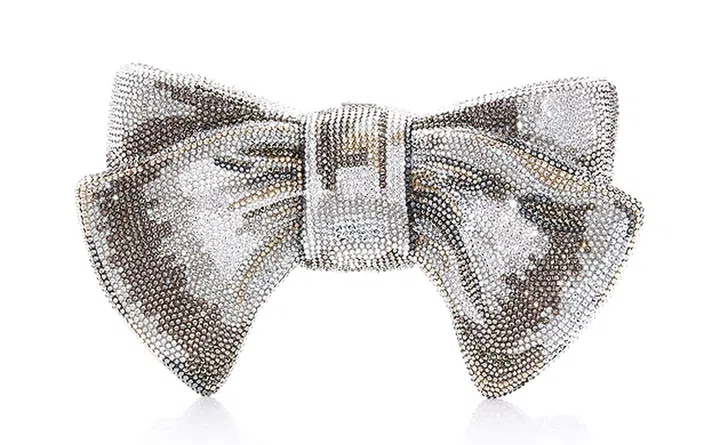 若“金色嘴唇”太过over,那这款Just For You水晶饰蝴蝶结手拿包便刚刚好。综合了浪漫元素、奢华质感以及醒目廓形,晚上拎着这款手拿包约会,绝对亮丽。