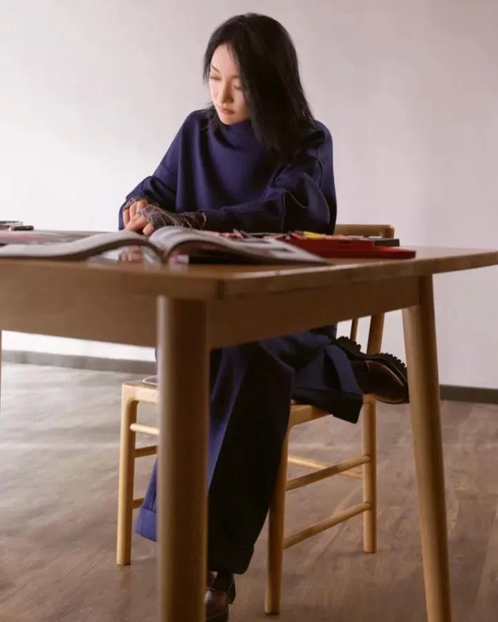 周迅作为品牌代言人和Less合作2023年秋冬“迅”系列,以“穿衣服简单就会舒服,舒服就会自由”的理念,亲自参与到色彩和面料的挑选与系列设计中。这张她专注投入创作的广告画面,她就以一身知性典雅的纯色造型,演绎出她舒适而自在的身心状态。