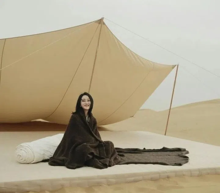 另外,Less秋冬推出0压系列。周迅以放下包袱,轻装远行的姿态,体现出倾听内心、服饰只为取悦自己的理念。其中这个在沙漠中披着长毯的画面,充满疗愈感,让人感受到一种从容与自由。
