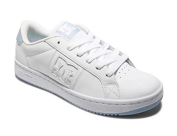 经典的白色校鞋带有DC标志、淡蓝色的贴片和穿孔侧面,彰显酷感。 穿上一件白色连衣裙或两套式,即可打造出青春活力的学院风。