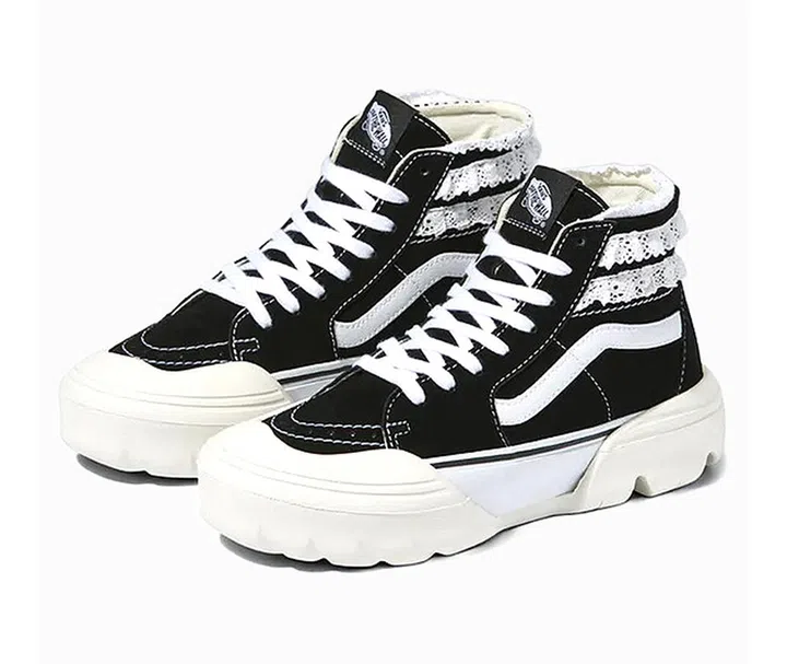 纽约城市最热门的设计师Sandy Liang,联手加利福尼亚标志性滑板品牌Vans碰撞出火花。看似酷炫的运动鞋在脚踝后方装饰可爱的荷叶边,而且是可拆卸式的,让你随心变换造型。建议可搭配蝴蝶结头饰、黑色吊带裙、白衬衫和香奈儿包,打造出Blackpink Jennie的同款时尚造型。
