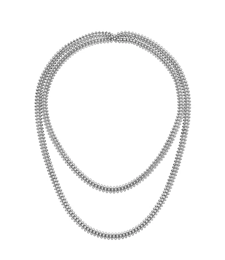 至于每面方形饰钉均镶嵌钻石的全铺钻设计,也延伸到项链及手链款式。长款项链则拥有多种佩戴方式(如可灵活变换为双圈颈链),展现不同风格。