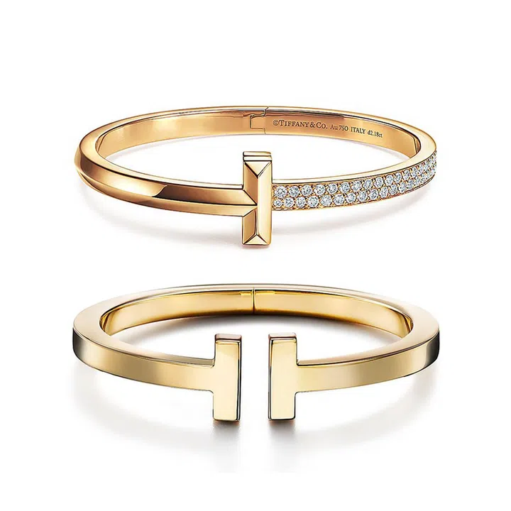 线条简洁利落的Tiffany T手镯是品牌的代表作之一,一粗一细的款式绝对适合情侣佩戴!而且手镯可向两边拉开佩戴,每日穿脱也更便利。