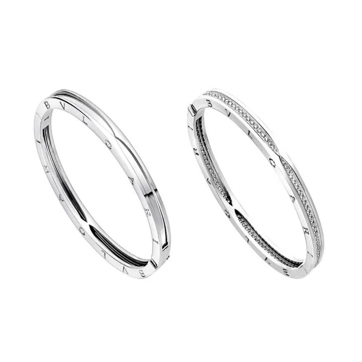 从古罗马竞技场索取灵感的B.zero1系列是Bvlgari的经典之一,极具建筑线条的手镯,散发着强烈的艺术气息。学Lisa超酷的Bvlgari首饰叠搭法! 喜欢更闪耀的款式?品牌还有密镶钻石的玫瑰金双圈手镯及白金单圈细手镯——请见:经典百搭的情人节珠宝。