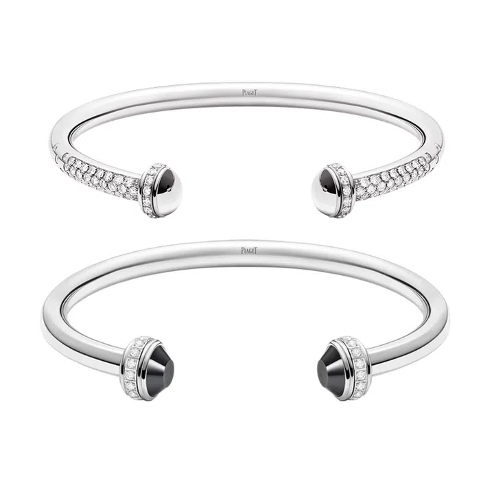 Piaget最具代表性的Possesion系列,手镯开口处设有可旋转的圆环,装饰明亮切割没转,在转动间更显华美光彩。不仅能两个人当作情侣款佩戴,该本身承载好运与成功美好寓意的“时来运转系列”,也适合送给自己作为事业上的奖励。