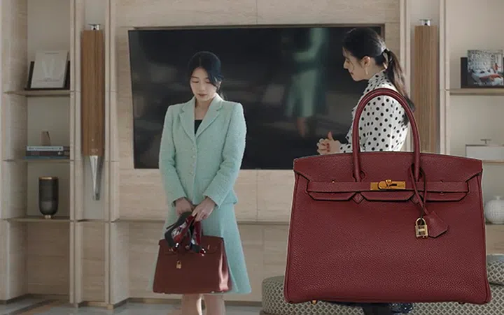 第一集一开始,女主在剧中点火烧车的画面给人留下深刻印象,该燃烧的手袋也可谓出尽风头。这款手袋就是来自“韩剧御用手袋品牌”Joy Gryson。