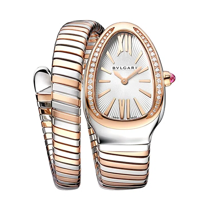 Serpenti Tubogas腕表将品牌的两大标志性元素——蛇的蜿蜒造型与Tubogas金属软管交织在一起,其造型优雅华美,可紧贴肌肤佩戴或戴在衣袖外,都是造型的点睛之笔。