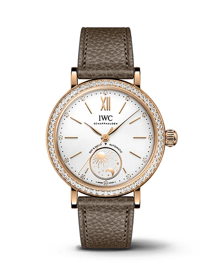 该表款是品牌Portofino 34mm表径腕表首次运用“昼夜显示”功能,以富有诗意的日月图腾展现时间流逝,搭配华丽的钻石镶嵌,凸显优雅高贵的气质。另外,腕表带有快速更换系统,方便你变换表带造型。