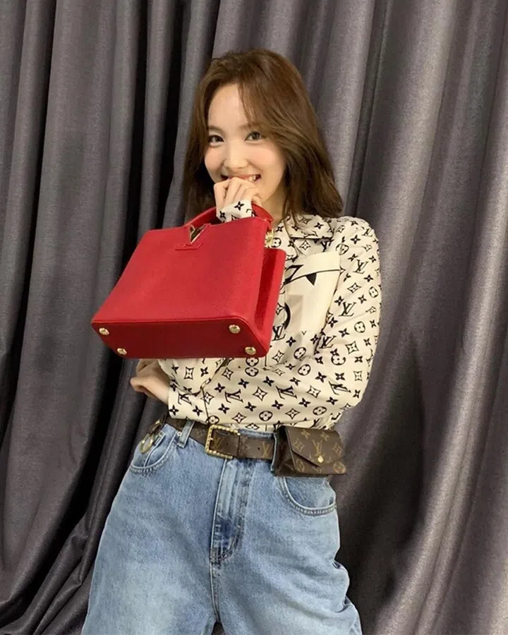 Capucines真的超百搭!娜琏这身LV老花纹“睡衣”及牛仔裤,穿出复古的街头范!
