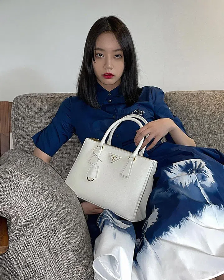 在新韩剧《我的室友是九尾狐》饰演女一的惠利,则以Prada扎染装搭配白色Galleria包,穿出独树一格的时尚态度。