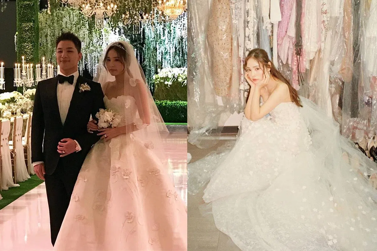 5 Feb 2018男的帅!女的美!新娘闵孝琳的婚纱还有立体花瓣韩国天团Bigbang成员Taeyang(太阳),在上个周末与女友闵孝琳(Min Hyorin)在首尔完婚。红遍全亚洲甚至全球的Taeyang是Bigbang首位结婚的成员,因此两人的婚礼也堪称是2018年最受瞩目的婚礼之一。《女友》抢先为你解析两位新人当晚的造型。NUYOU TeamCELEBSfashionspottedweddingweddingbandweddinggownweddingsuitwhoworewhat婚戒婚纱MIN HYORIN IN OSCAR DE LA RENTATaeyang挽着身穿Oscar de la Renta平口白礼服的闵孝琳入场,头顶Chaumet“王冠”及白色花卉刺绣的头纱,完美呼应花瓣形的领口及立体雕花的设计,宛如童话故事里的公主,超梦幻。TAEYANG IN TOM FORDTaeyang穿着Tom Ford黑色西装搭配白衬衫及黑领结,将钟爱的雏菊别在西装翻领上,与闵孝琳的雏菊手捧花相扶相衬。去年,Taeyang与意大利品牌Fendi合作推出的也出现了不少daisy标志。MIN HYORIN IN JENNY PACKHAM第二次入场,闵孝琳换上英国凯特王妃爱牌Jenny Packham 2018婚纱系列的圆点深V领白纱,领口延伸到肩的荷叶设计超浪漫主义,站在身穿酒红色丝绒西装外套的Taeyang,一俊一俏简直羡煞旁人。ENGAGEMENT BAND两人在婚前特地飞往夏威夷拍摄婚纱照,在影片及照片中闵孝琳佩戴法国品牌Chanel的Coco Crush戒指,将品牌标志性的“菱格纹”雕刻在戒指上,简约亦不失时尚个性,极有可能是他们的婚戒!更多明星婚礼质询,请点击本地女星Sheila的”婚纱”造型及沈琳宸的甜蜜婚照。分享文章: