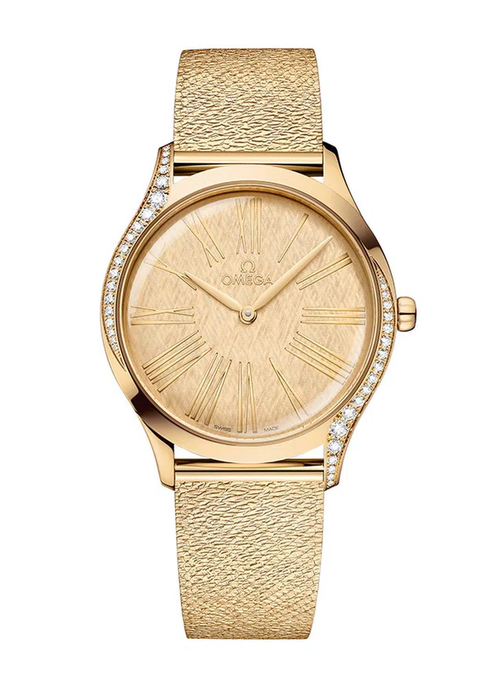 Omega极受欢迎的De Ville Trésor系列,拥有轻薄表壳及流线型轮廓,设计特点是镜面表背饰有名为“Her Time”的独特花纹,寓意“映射自我”。
