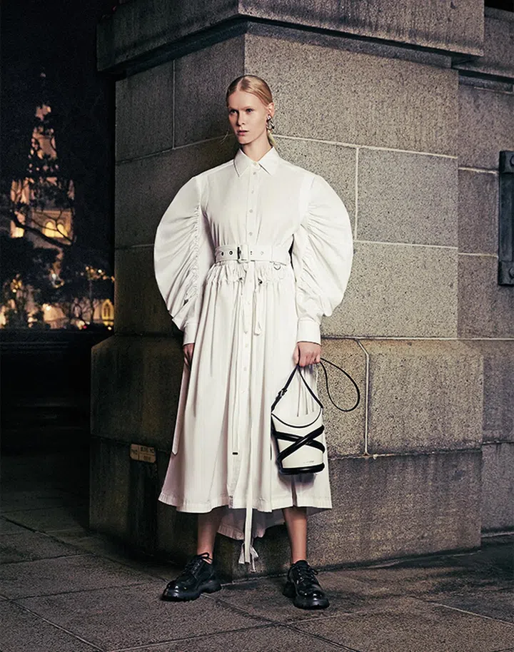 纯净、纯粹、纯洁——是此系列的时尚魅力。It's far from minimalism though。把焦点放在独特廓形上(如衬衫式连衣裙或牛仔外套上的茧形袖),也把她擅长的精湛时装工艺运用在日常材质上(如牛仔布连衣裙的唯美荷叶裙摆和针织连衣裙上的马甲细节),完整一个结构性超强的超美系列。