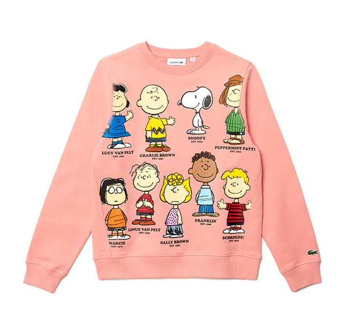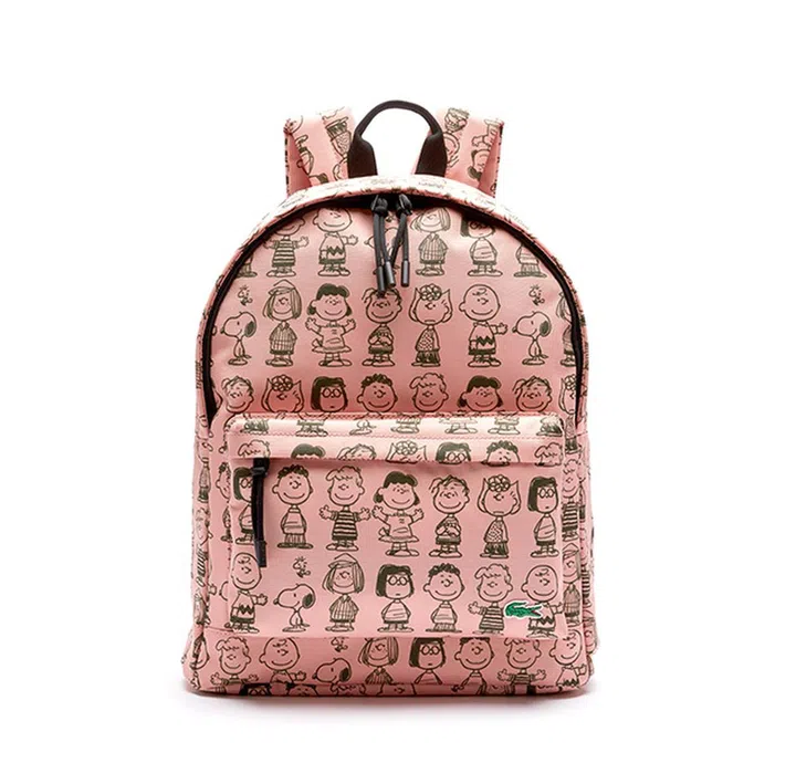 这系列已经是Lacoste第3次与《花生漫画》联名合作。这款帆布印花背包,将经典的角色并排于清新的蜜桃色背景,释放内心孩子气的同时也不会太过腻。