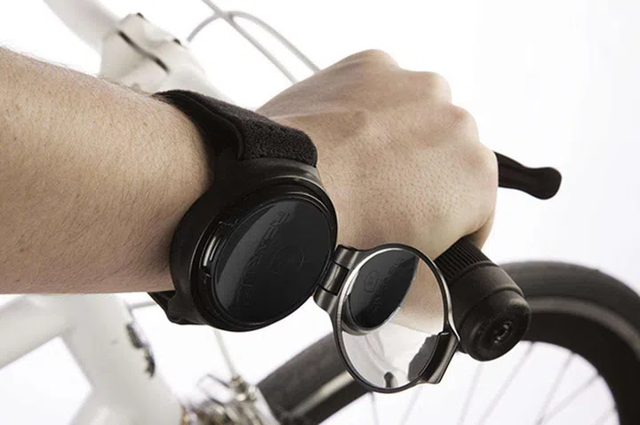 超纤薄的骑行后视镜,佩戴在腕上,给你更好的视野,有利于行车安全。而且它的尺寸灵活,设计经典,女性纤细的手腕也能舒适佩戴。