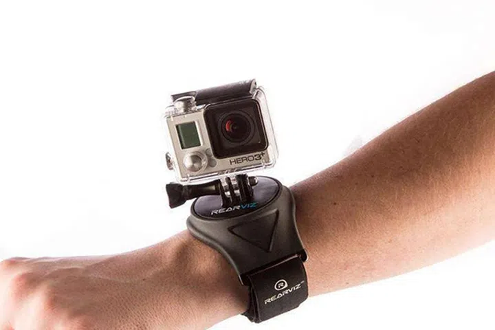 支持匹配Go Pro、Sony、Toshiba、Kogan等多品牌action cameras,让你把运动相机佩戴在腕上,还能360度记录骑行路程。