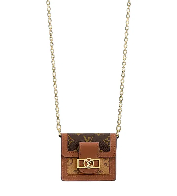 完全可以当小废包使用的耳机壳。采用Louis Vuitton标志性的Dauphine手袋原型设计,迷你版的耳机壳配有金属肩链带,可垂挂于颈部,也可以斜背佩戴。