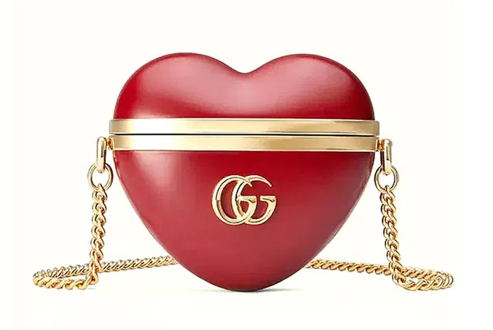 Gucci的另一款好玩之作,心形造型的手机壳采用红色树脂材质制作,饰有品牌的双G标志,并以金色调金属镶边,增添一抹复古可爱的气息,装点年末派对造型的小利器!