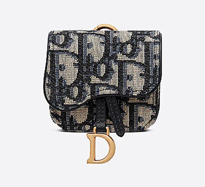 Dior的这款AirPods Pro耳机壳结合了品牌的两大经典元素:马鞍包设计和蓝色Dior Oblique提花布料,外形精致优雅。耳机壳也设有一个金属环,可扣上腰带、包包肩带,或Dior同系列的马鞍包。