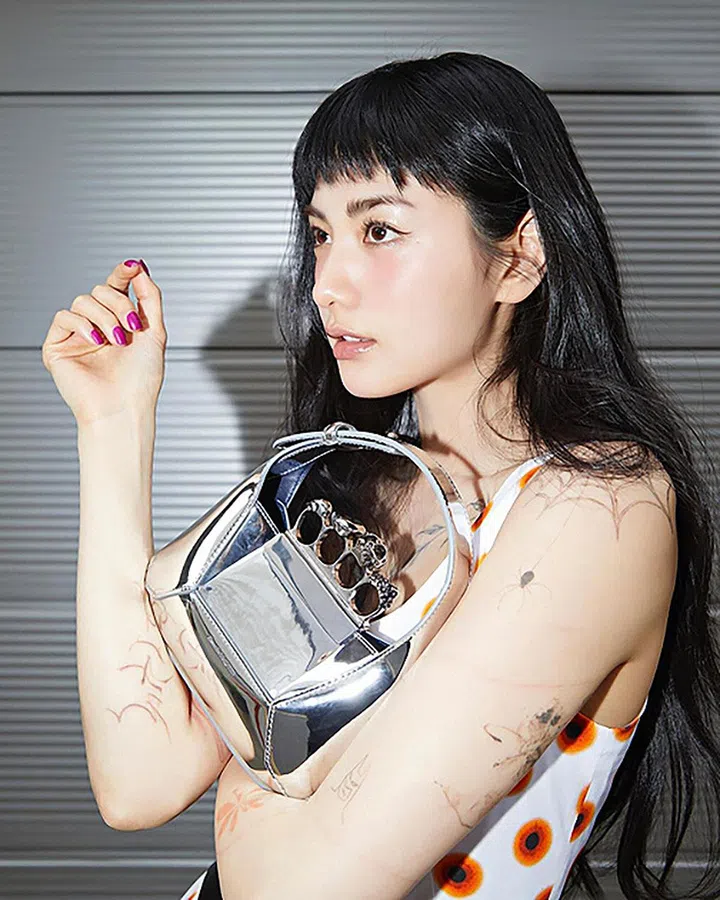 果然很Alexander McQueen!这款手提包以亮面银色皮质打造而成,前卫又大胆。包包的另一亮点绝对是戒指形状的手提把,上面还镶有骷颅头等暗黑元素 —— 是个同时兼具实用+独特性的设计哦。