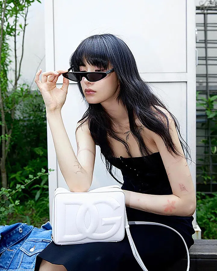 以小牛皮打造的Dolce & Gabbana斜背包包,正面可是印有品牌极具辨识度的压花logo。除了林珍娜背戴的白色包包,这个款式还有黑色&蓝色可选择~