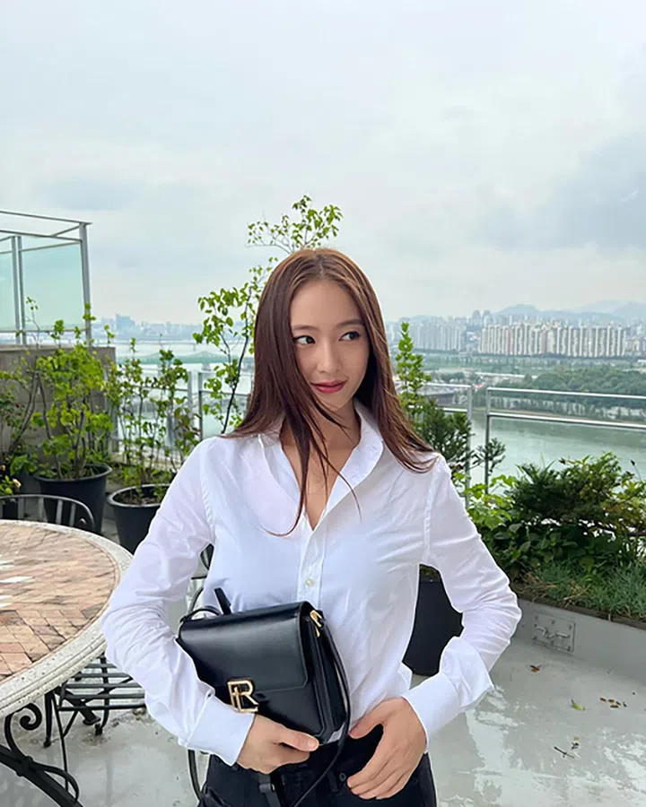 郑秀晶手上这款,是Ralph Lauren专为女性设计的RL 888 Box手袋,灵感源自Lauren先生出生地的建筑,廓形硬朗挺括,彰显独立精神。郑秀晶搭配白衬衣造型,风格干练又简洁。