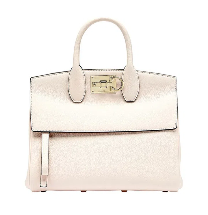 这款Studio手袋大小适中,提供足够容量盛放每日通勤必需。另外手袋色调淡雅,点缀金属Gancini buckle,使极简设计展现更多现代精致感。