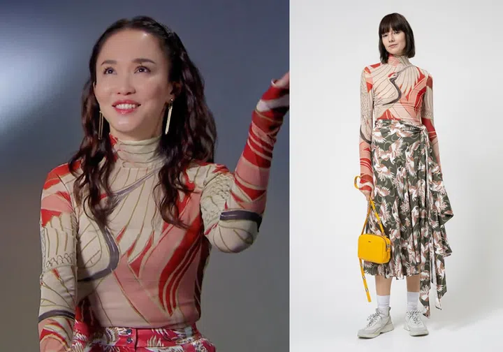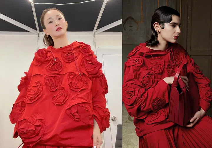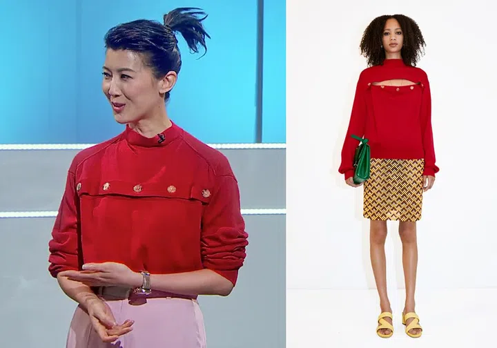 范文芳身上的Valentino立体剪裁花卉连帽衫及红色百褶裙,犹如甜点上精致的花卉装饰,巧妙地呼应了节目主题并划下美丽句点。