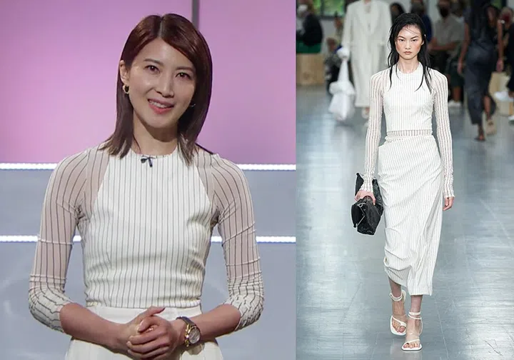 虽两位御用的造型师不同,但感觉她们有“互搭”,因为欧萱在同集也穿了紧身衣!Sportmax微透视条纹长袖外罩同款无袖上衣,打造了精彩的视觉层次。