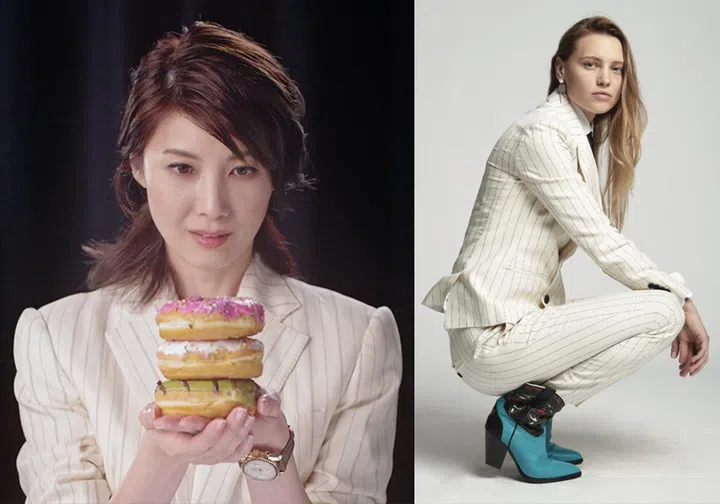 最近开点甜店的欧萱在第2集的片头拿着甜甜圈“杂耍”,这身帅气的条纹西装出自Polo Ralph Lauren 2020早秋系列。另外,看看本地还有哪些女明星老板!