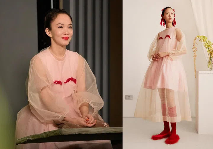 范文芳在首集,以一袭梦幻的Simone Rocha x H&M透视纱裙亮相,穿出“糖朝”公主范!