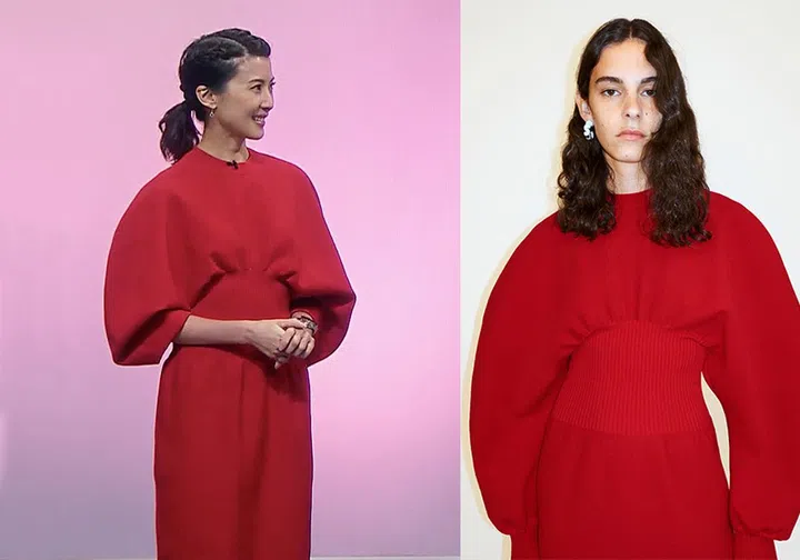 来到总决赛,两位主持人都分别以红色造型登场。欧萱穿上极具建筑风的Bottega Veneta连衣裙,展现简约的艺术气息。
