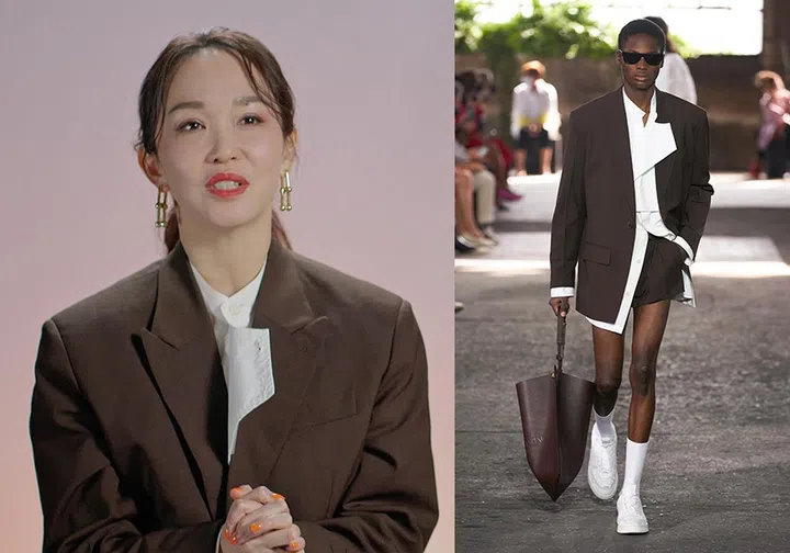 在第7集的,范文芳这身有型的oversized西装是Valentino 2021春夏系列的男装——这也是她在发布会时的造型!