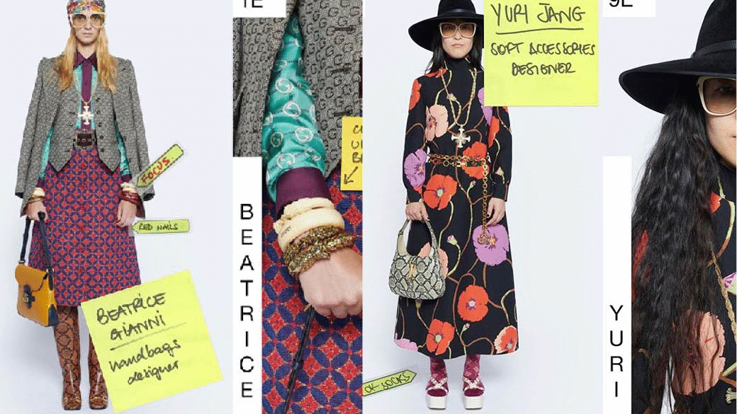 Gucci已宣布不再跟随季节发布,且把每年的时装秀缩减为两次。这次Alessandro Michele以“尾声/终曲”(Epilogue)为题,以长达12小时的直播,在罗马文艺复兴晚期建筑萨凯蒂宫(Palazzo Sacchetti)呈献了这场秀(晚8点正式发布)。通过安置在各处的摄像头供观众“窥视”,展现真实且事无巨细的幕后细节,有点行为艺术的意味,也给人极强的带入感。值得一提的是,这次的模特全由品牌团队担纲(其身份职位用标签标出),并透过早期Mac OS操作系统的视频窗口进行展示,Alessandro Michele还以语音讲述了这次时装秀的灵感故事。每件衣服、画作、建筑甚至瓜果蔬菜都有各自的信息和故事。