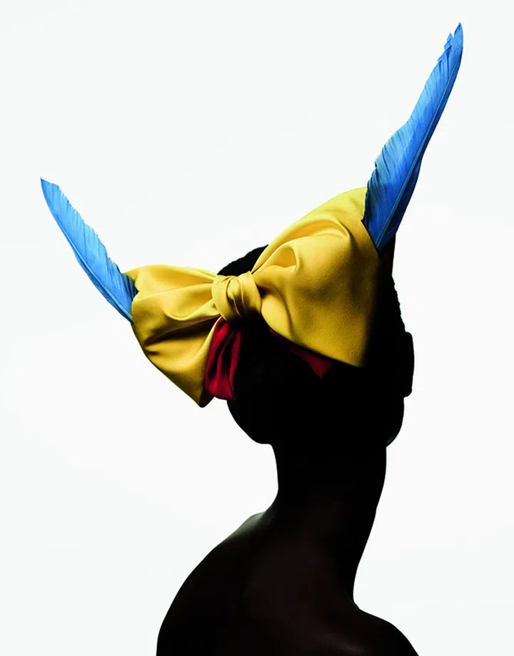 Stephen Jones根据Christian Dior 1937年水彩画制作的羽饰“蝴蝶结帽”(图 Sølve Sundsbø, 2019)