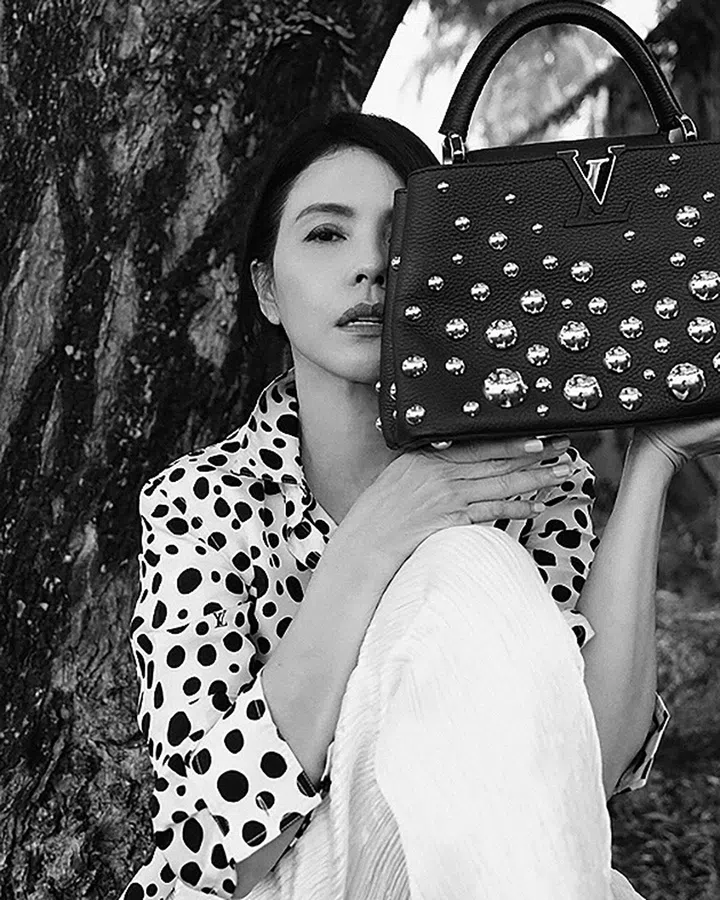 郑惠玉是Louis Vuitton的铁粉,她最爱的袋型?Capucines当属其一。上图这款配色柔和的粉紫调Capucines迷你袋,风格松弛优雅,无论搭配复杂或简约的服装都能和谐相衬。