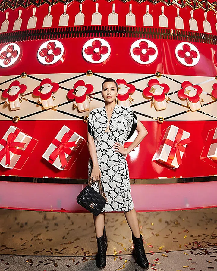 2023年11月,Louis Vuitton首次在新加坡打造21米高的节日树,当时众多本地艺人都到场共同庆祝了节日树的揭幕仪式。当天阿姐选背品牌的GO-14 MM手袋,该袋款灵感取自Louis Vuitton历史“起点”——行李箱,名字来由?“G”hesquière “O”ctober-20“14”。