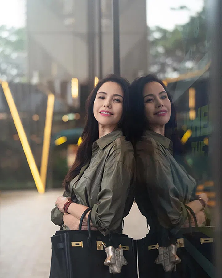 阿姐郑惠玉以暗绿色服装搭配黑色Hermes Birkin手袋,并在手袋上装饰一个金色的星形Chanel零钱包,让造型经典又活泼。她早前也用这款包包搭配一袭宝石蓝礼服造型,并分享道:当你盛装打扮的时候,取悦的不是他人,而是自己。一个女人真正的魅力源于骨子里的自信,源于对事业的热爱,和对生活的美好态度。