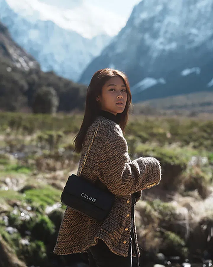 不难看出Celine是陈一心最爱的手袋品牌之一。该链袋采用长方形格纹绗缝设计,金色金属粗链与手袋上的Celine logo呼应,风格简约又百搭。