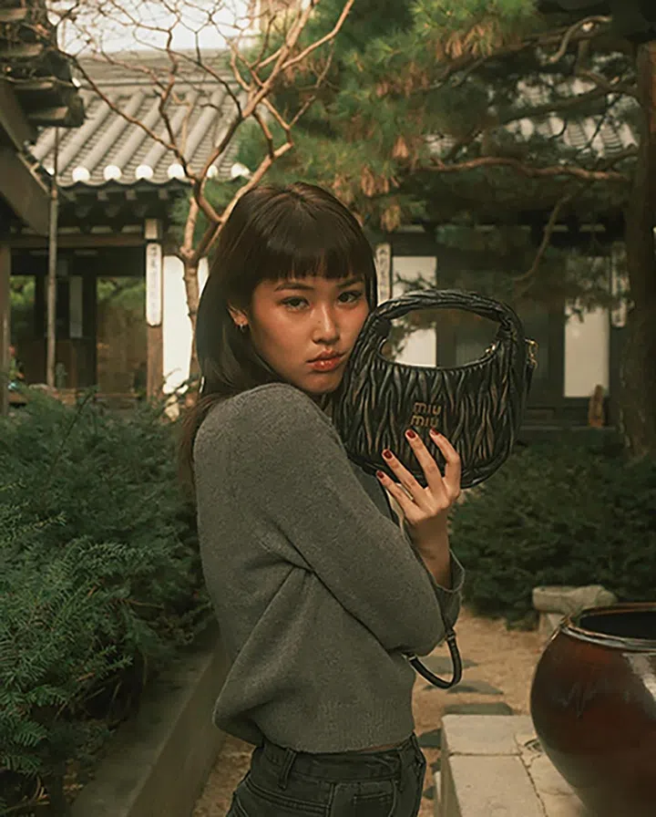 今年颇受韩星和时尚人欢迎的Miu Wander手袋,袋身以品牌品牌经典matelassé皮革打造,工艺精湛、质感立体,而且背起来又甜又酷(配备长肩带)。