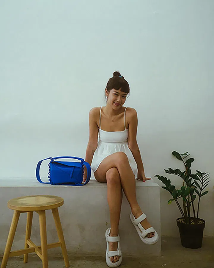 远看手袋外观远看,款式应是来自Rabeanco的Unni mini肩袋。Rabeanco价格友好,却拥有诸多设计入时的皮革款式,买来当上班包或日常休闲包,会是优雅又随性的实用款式。